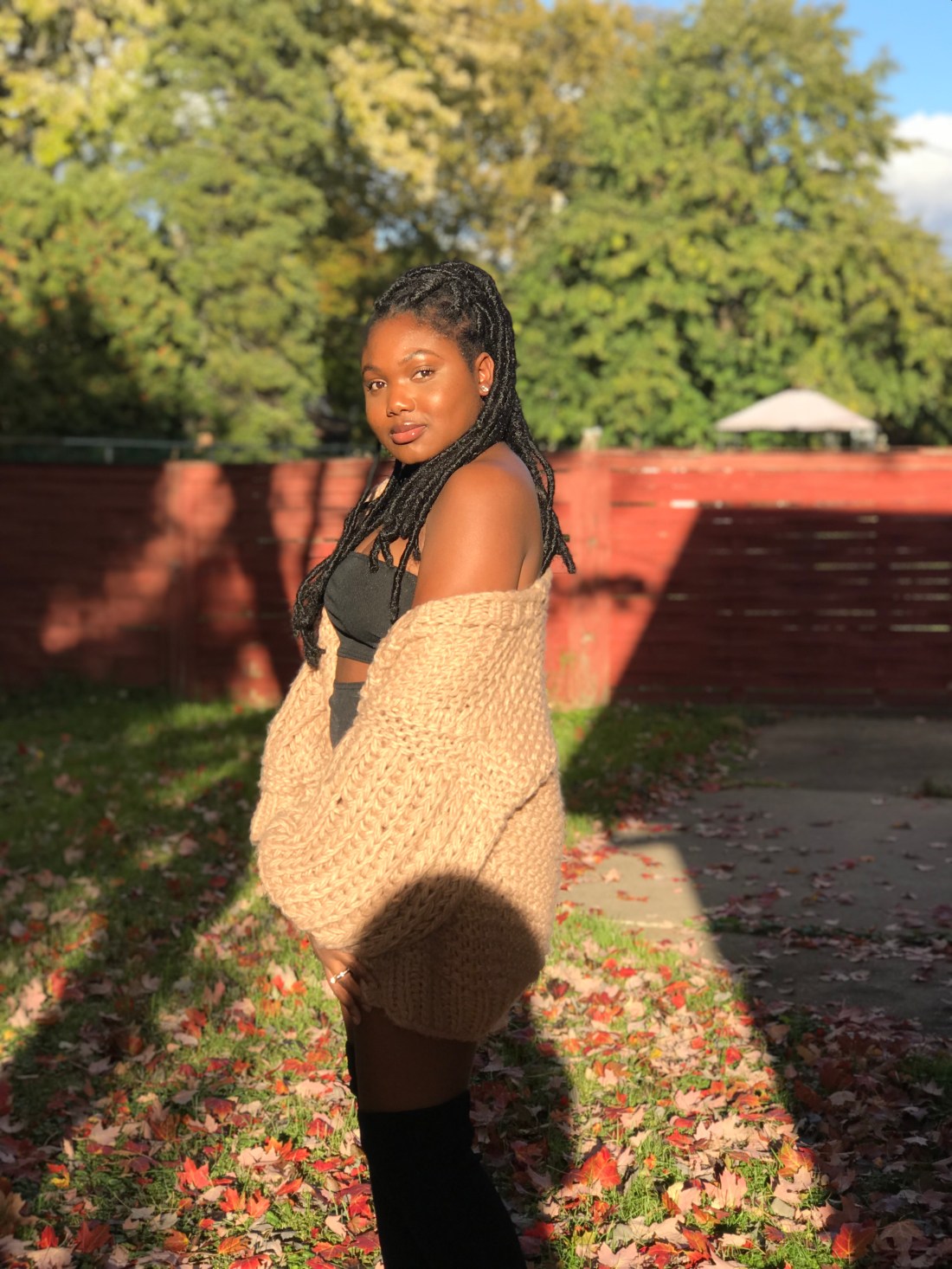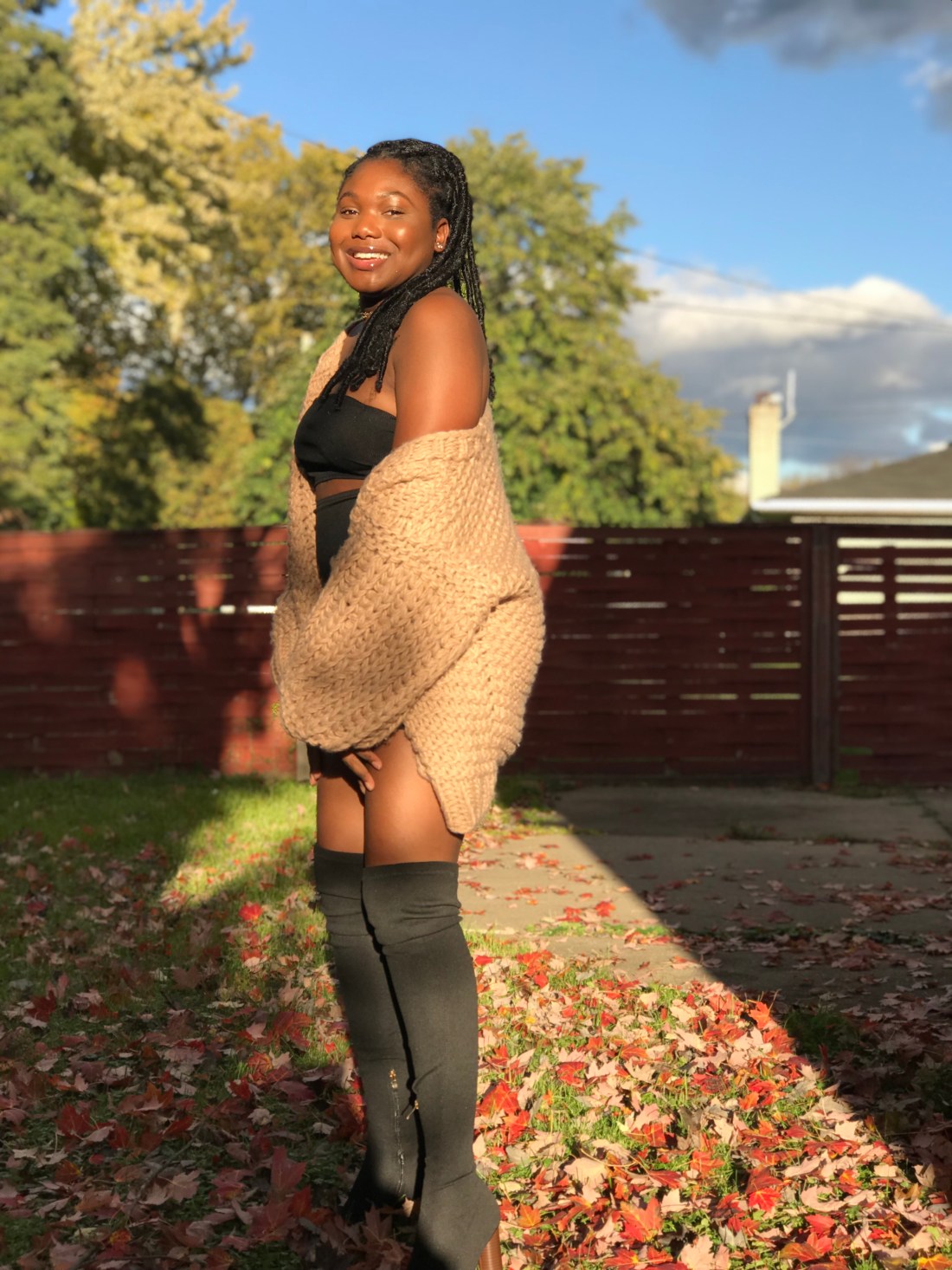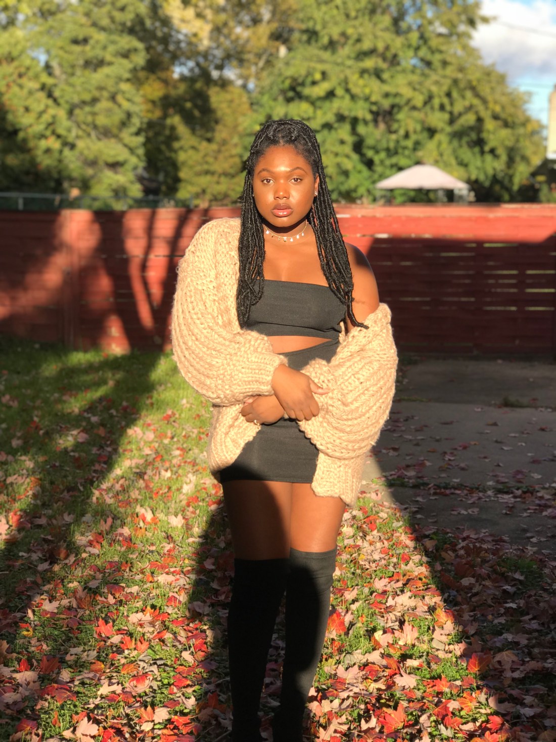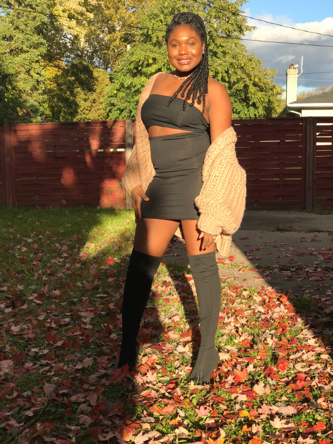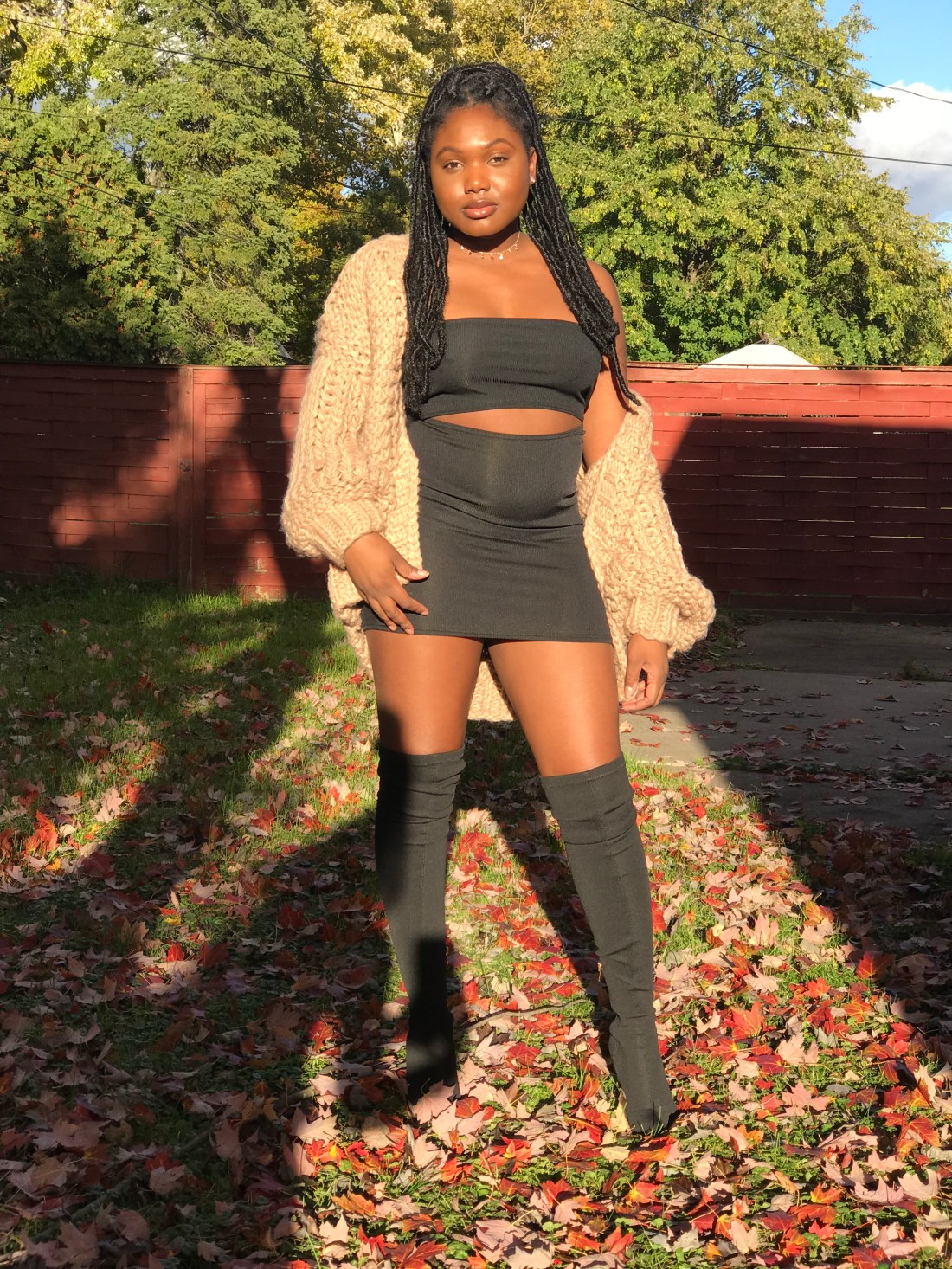 As for my outfit, all black and skimpy with a nude oversized sweater- yes please! I think this sweater will be my official uniform this winter.
