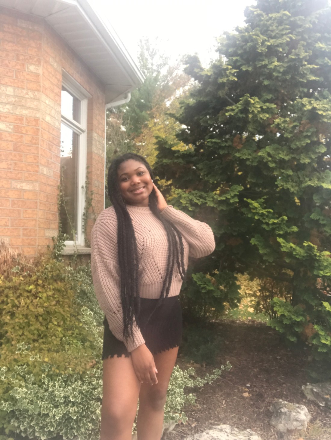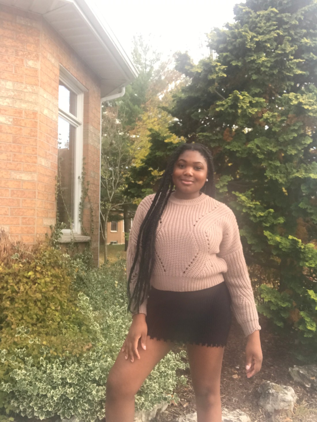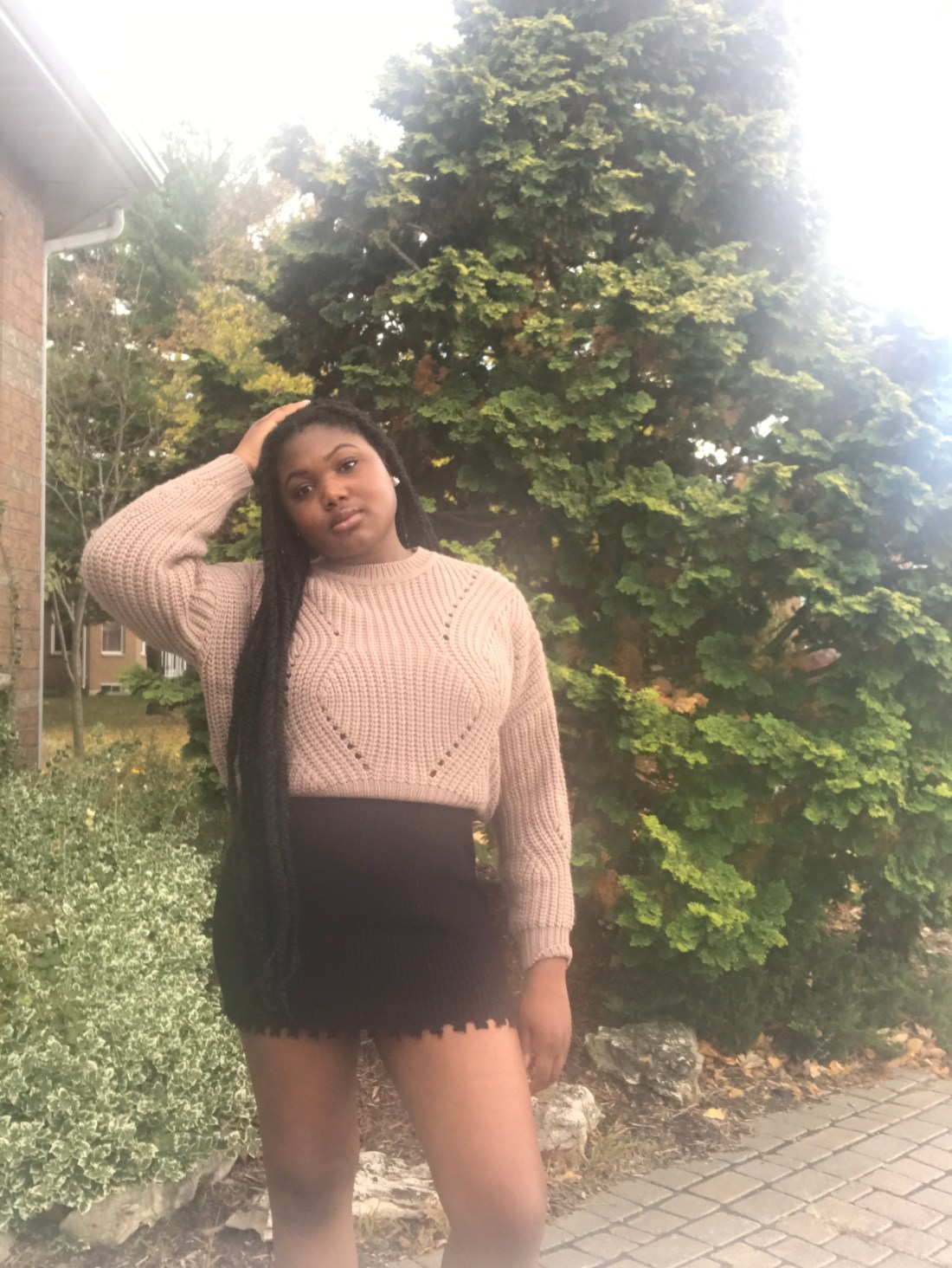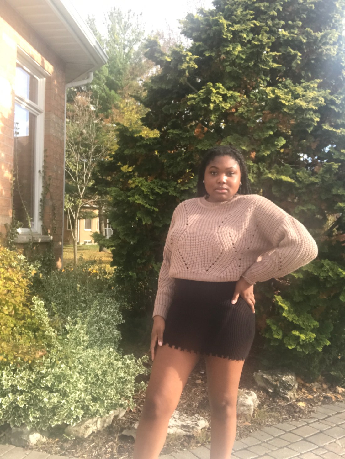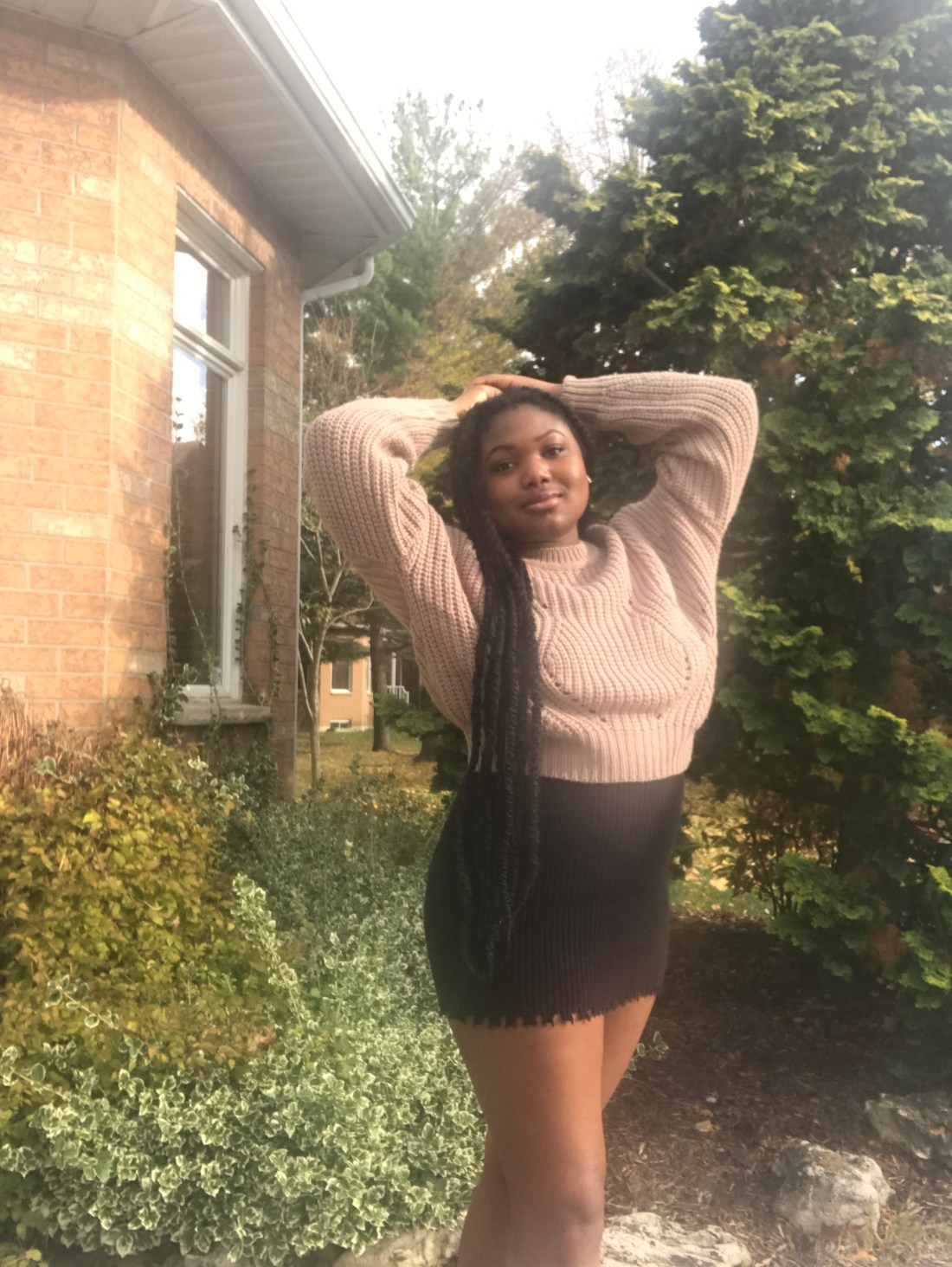 This outfit is all about layering, with a familiar sweater over an old dress!